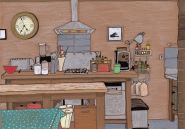 Mexican Transformer, white and black pen on tinted card